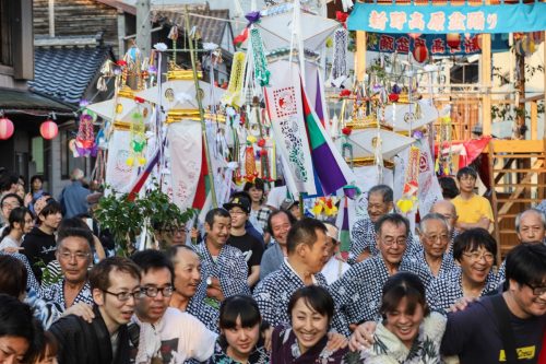 切子灯籠の行列はお太子樣で神事を行うため移動します。