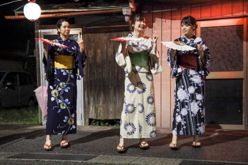 2019年のうら盆は8月24日(土)でした。以前は曜日に関係なく24日に行われていたようですが、近年はより参加しやすいように8月の第4土曜日に行われるようになりました。本盆ではお客様の接待で忙しかった女性たちが楽しめるよう、踊りは本盆同様、21時から子ども音頭取りで幕を開け、明け方までノンストップで続けられます。