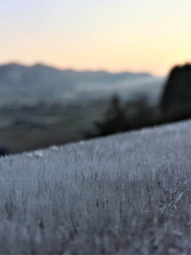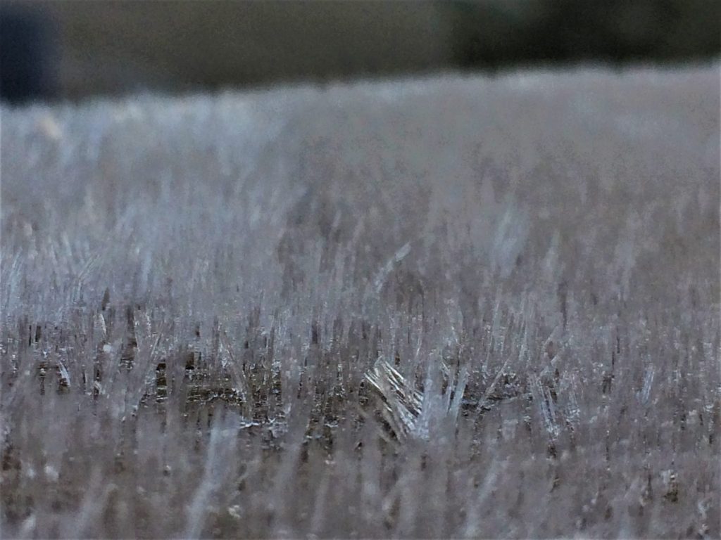 氷点下2℃の今朝(4/25)の新野高原 放射冷却で霜がすごい!まるで「霜の苗代」です。