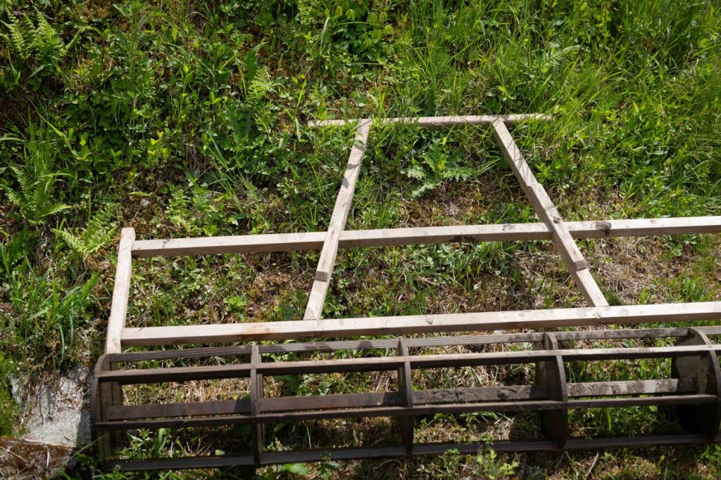 田植え用の筋付け器:これをころころ転がすと、碁盤の目がマークされる。その交点に苗を植えていきます。