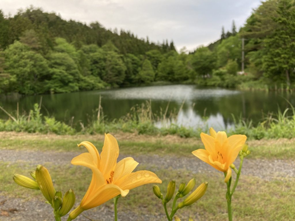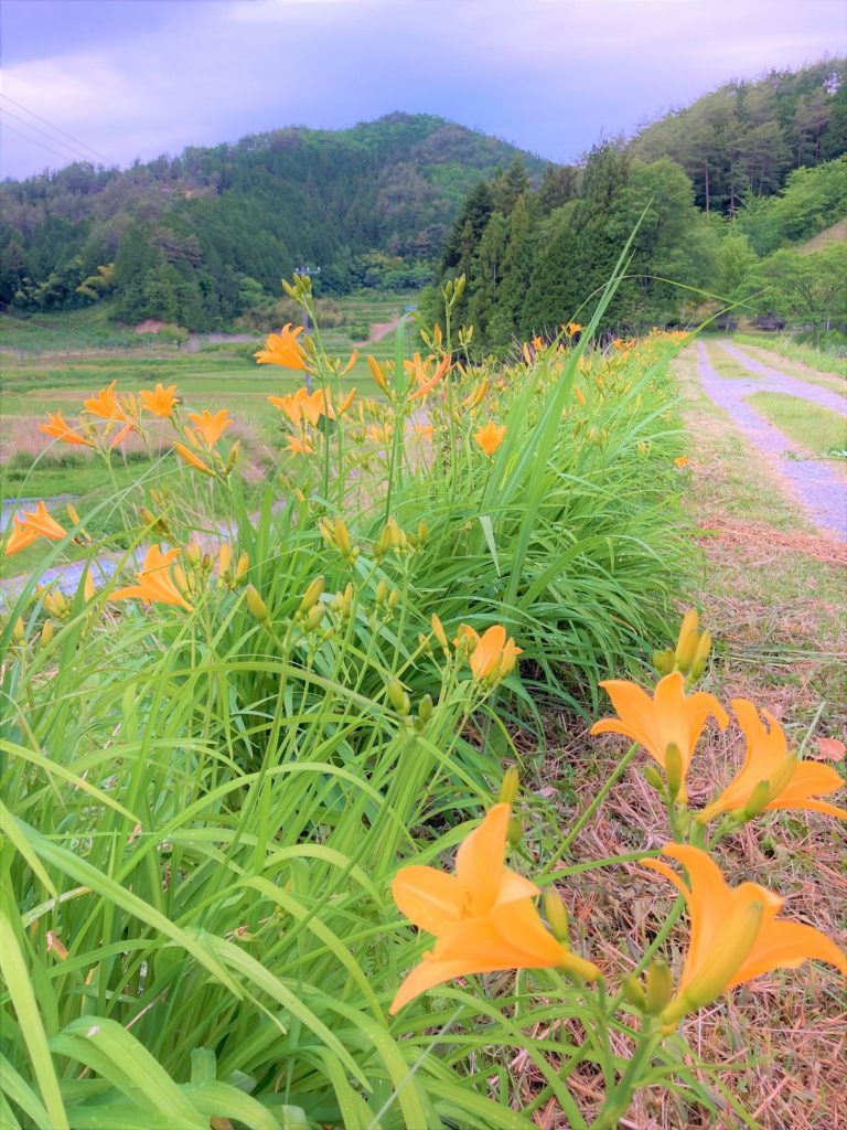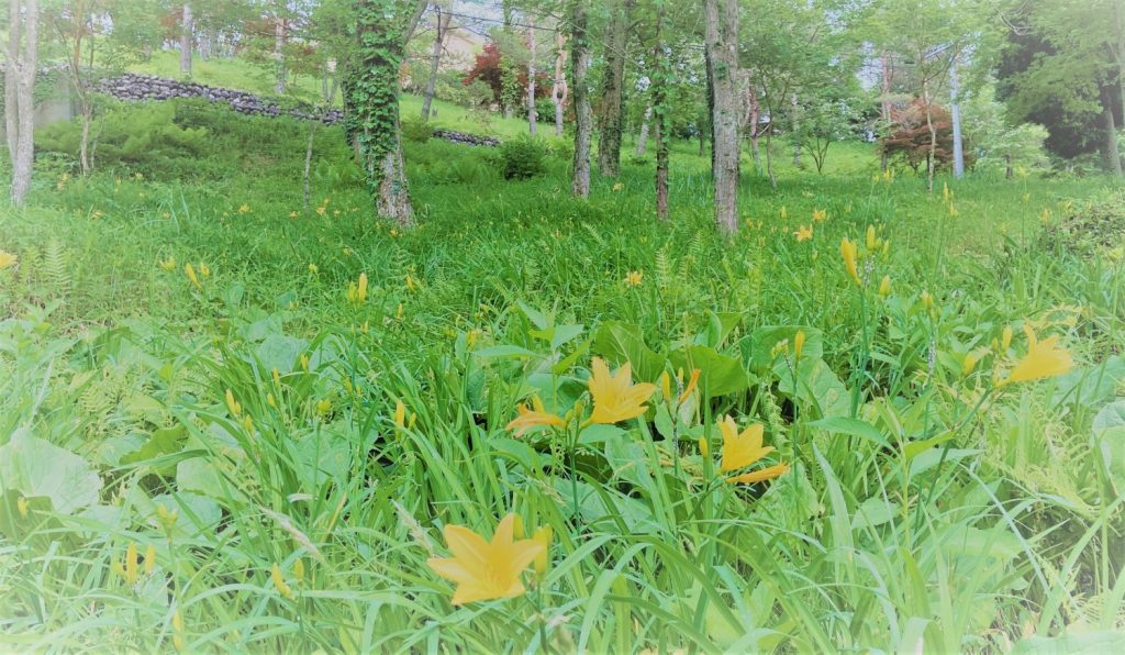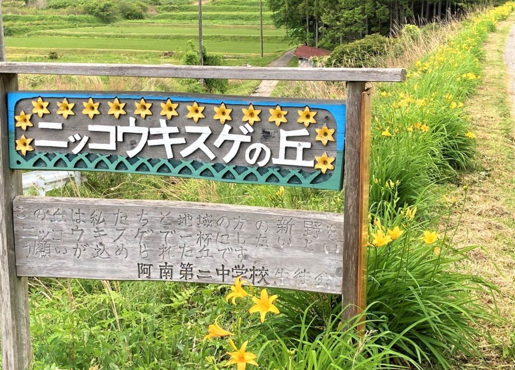 大村湖のニッコウキスゲが満開です。阿南第二中学の生徒会とPTAの皆さんで、長年にわたって大切に手入れして、育てています。