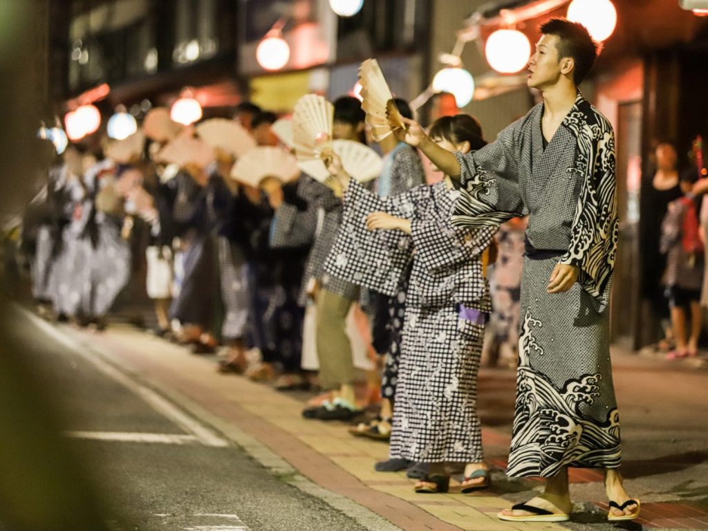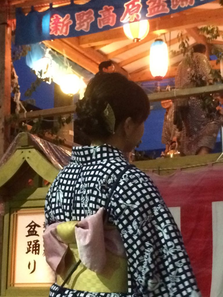 新野高原盆踊りの会 音頭取りの公式浴衣 ステイタスでもあります。この浴衣の人の横で踊っていると優しく教えてくれますよ。