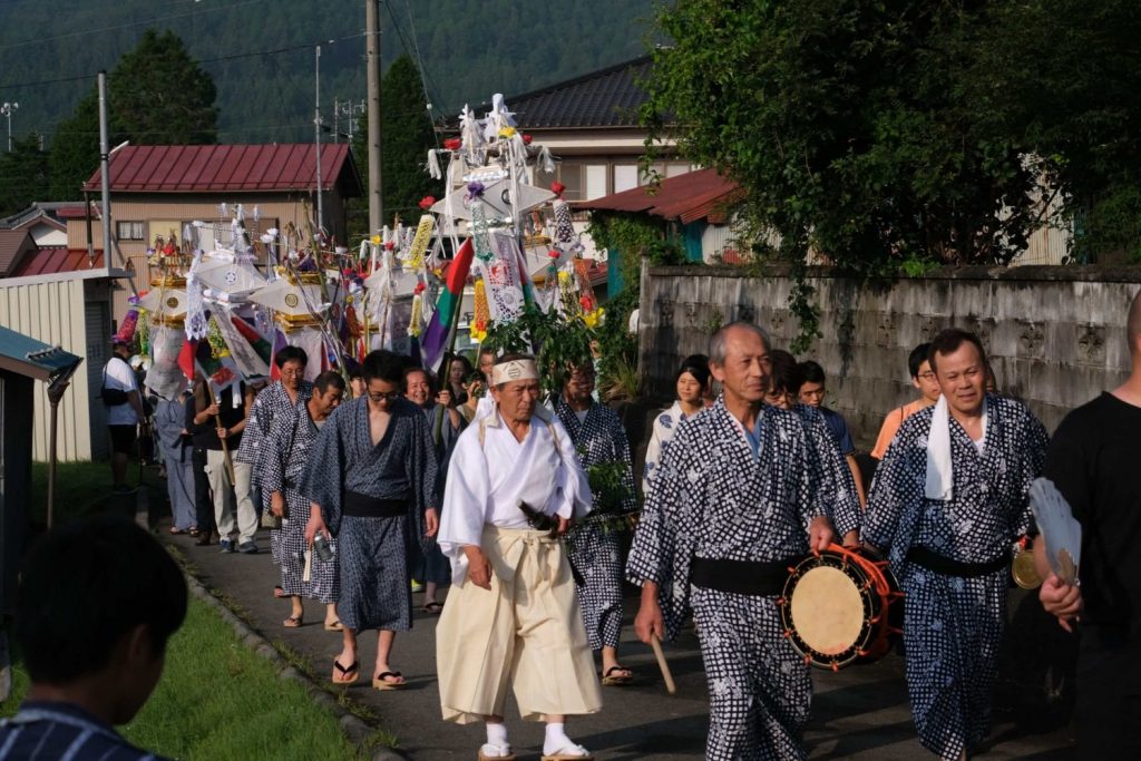 また、一般に盆踊りにともなう「送り」の行事では、送られる対象として新精霊や共同体祖霊などがあると指摘されています。新野の場合、新精霊は盆踊りの場に登場する「切子灯籠」に宿り送られると解釈するのが自然と思われます。