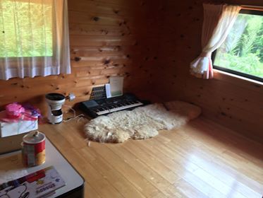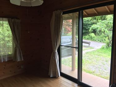 「飯田市で高速を降りたときには土砂降りの雨だったのに、阿南町に入るころには青空が見えてきてうれしくなりました。今日は、本当にラッキーです。ここは、空気がさらさらと乾いていてほんとに気持ちの良い風が吹いていますね。うーん。空気がおいしい。」と、新野高原を見渡すログハウスカサビエントのウッドデッキで深呼吸をしていました。