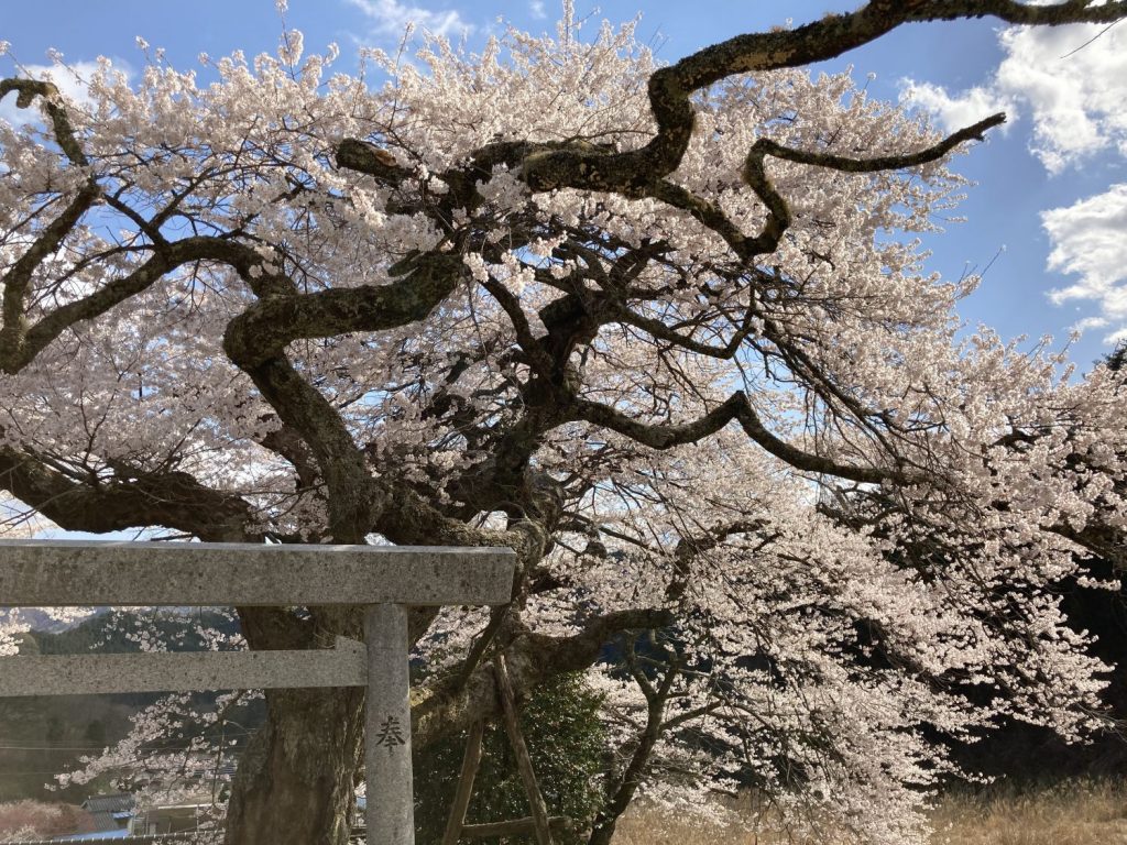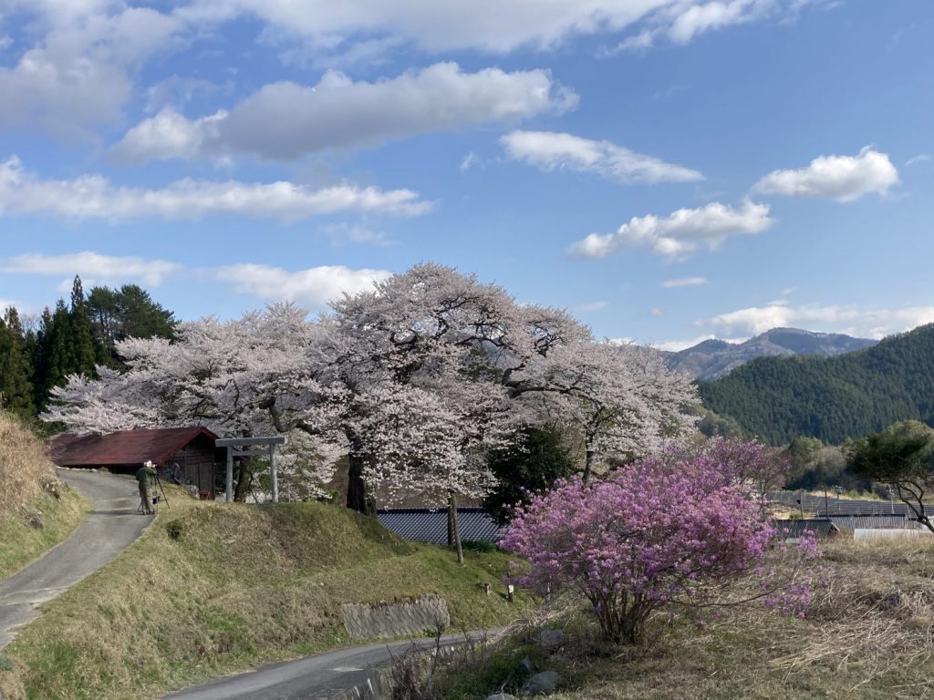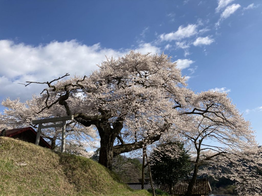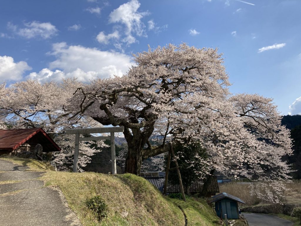 南信州新野高原(長野県下伊那郡阿南町新野)の「矢野の愛宕様の桜」が4月10日満開です。