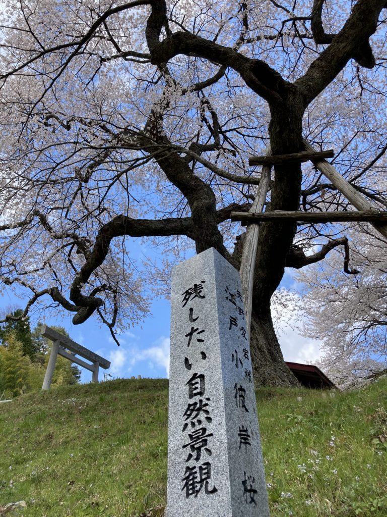 樹齢400年近くの「江戸小彼岸桜」はピンク色がソメイヨシノよりも濃く、鮮やかです。