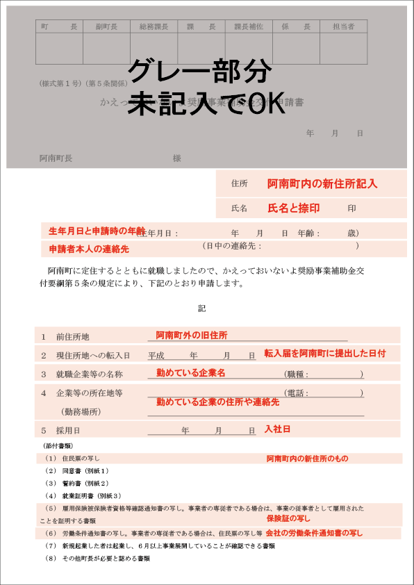 上記書類と合わせて、1枚目の「かえっておいないよ奨励事業補助金交付申請書」に記載されている必要添付書類のご手配をお願いします。