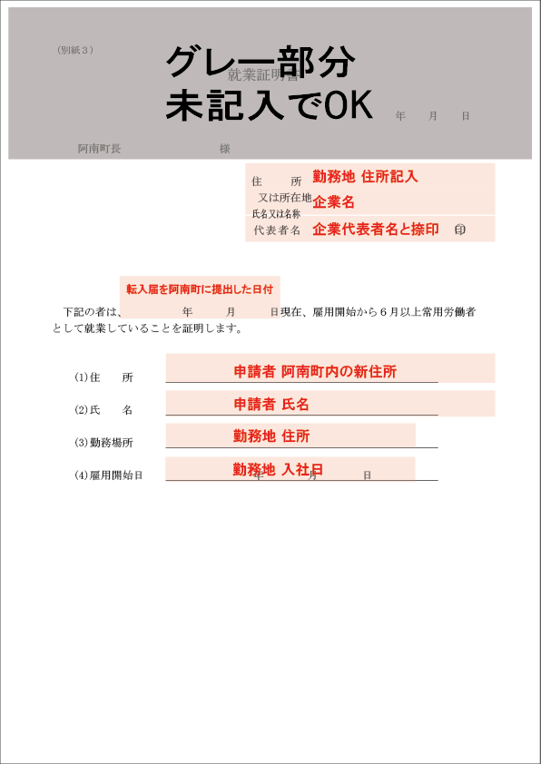 ③転入手続きをする際に阿南町住所の「住民票」を発行する。