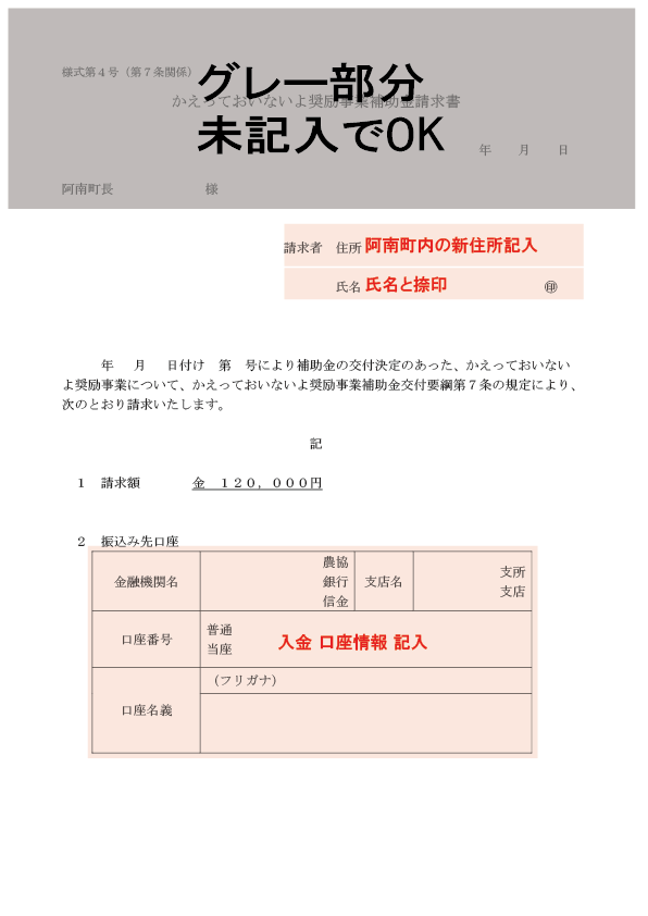 最後に「かえっておいないよ奨励事業補助金交付請求書」という書類を1枚、役場へ提出します。