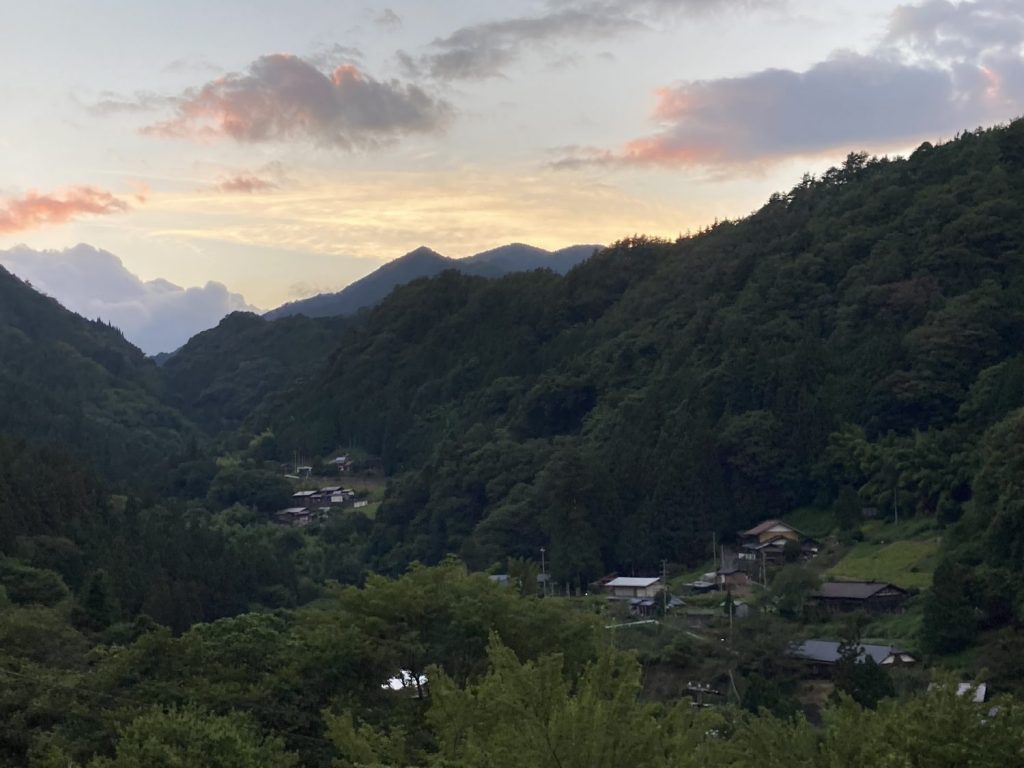 南信州阿南町和合の日吉集落。夏の夕暮れの山村の原風景。