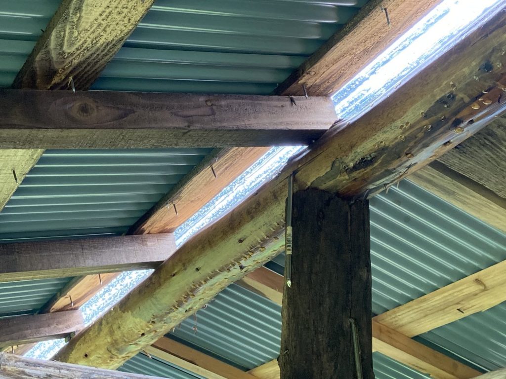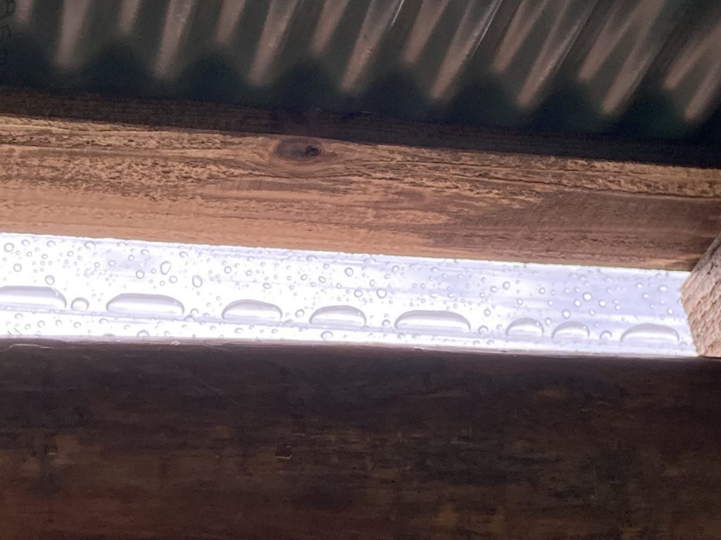 これで、雨漏りがなくなりました。やはり、毛細管現象で、重ねたポリカの間から、雨が伝って入ったようです。二重三重に 水が入ってこないように油性防水コーキングしました。