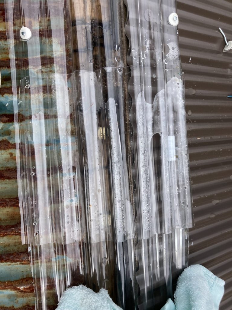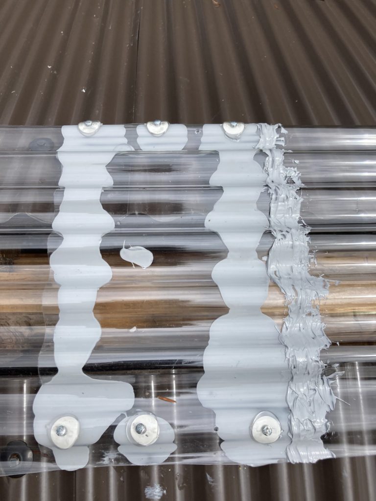 もし、強い風で雨が吹き込むようだったら、ポリカと波板の境目に、スポンジ等詰め物してからコーキングしようと思います。