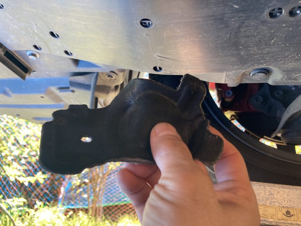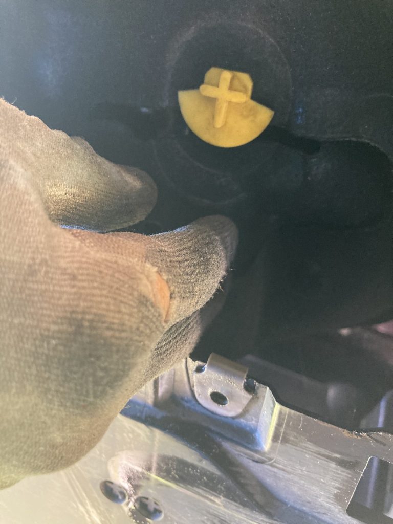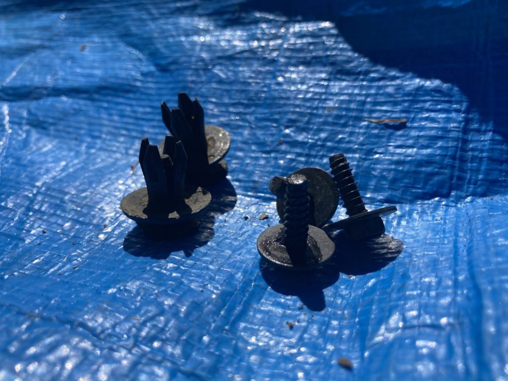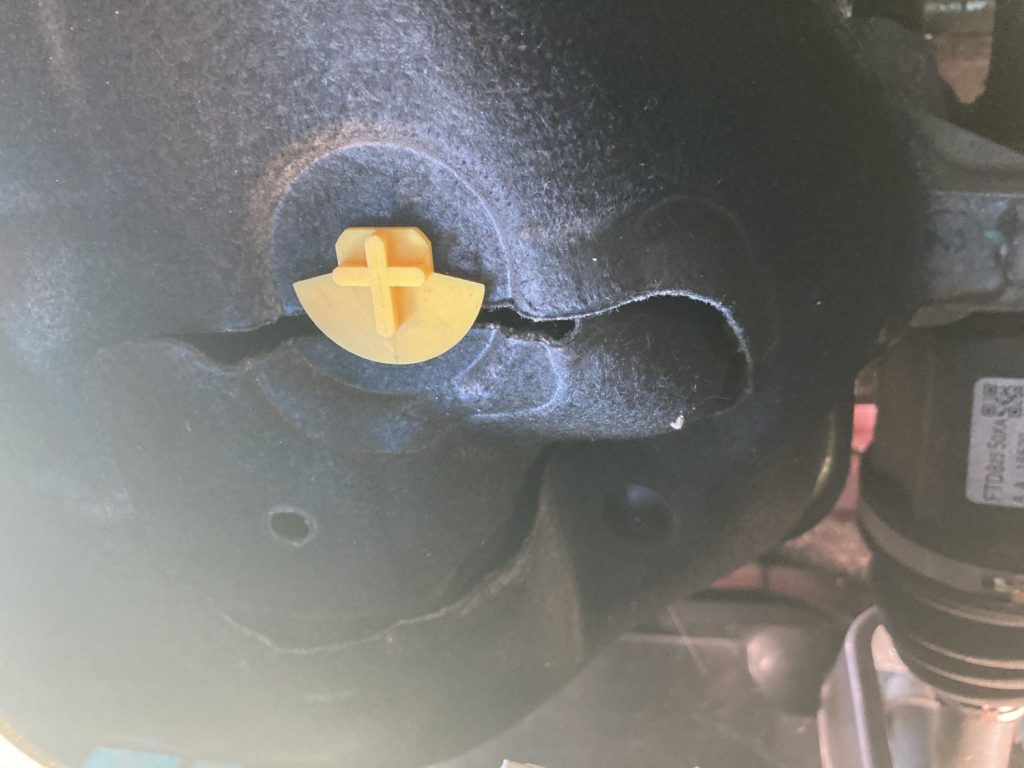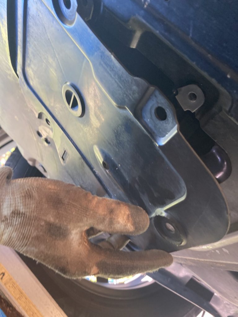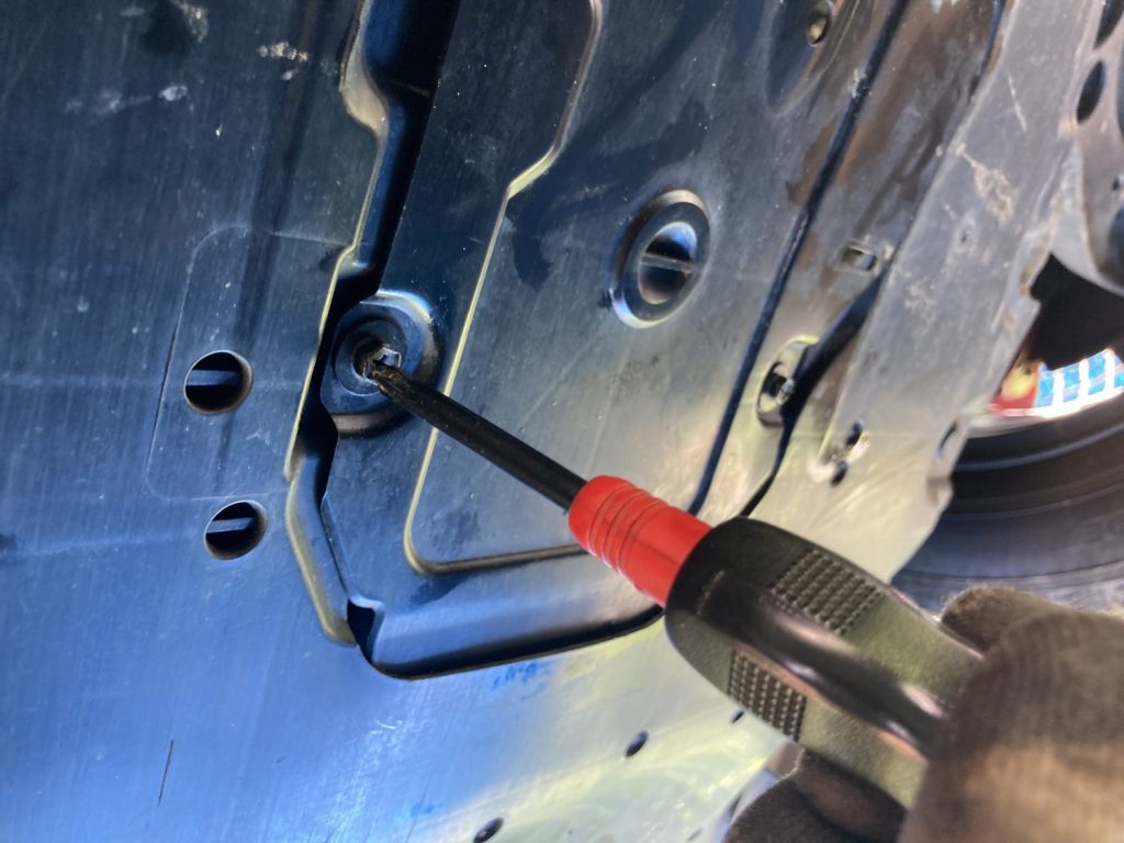 下部カバーを取り付けます。前方を差し込んでから、ワンタッチクリップ、ボルトの順に取り付けます。