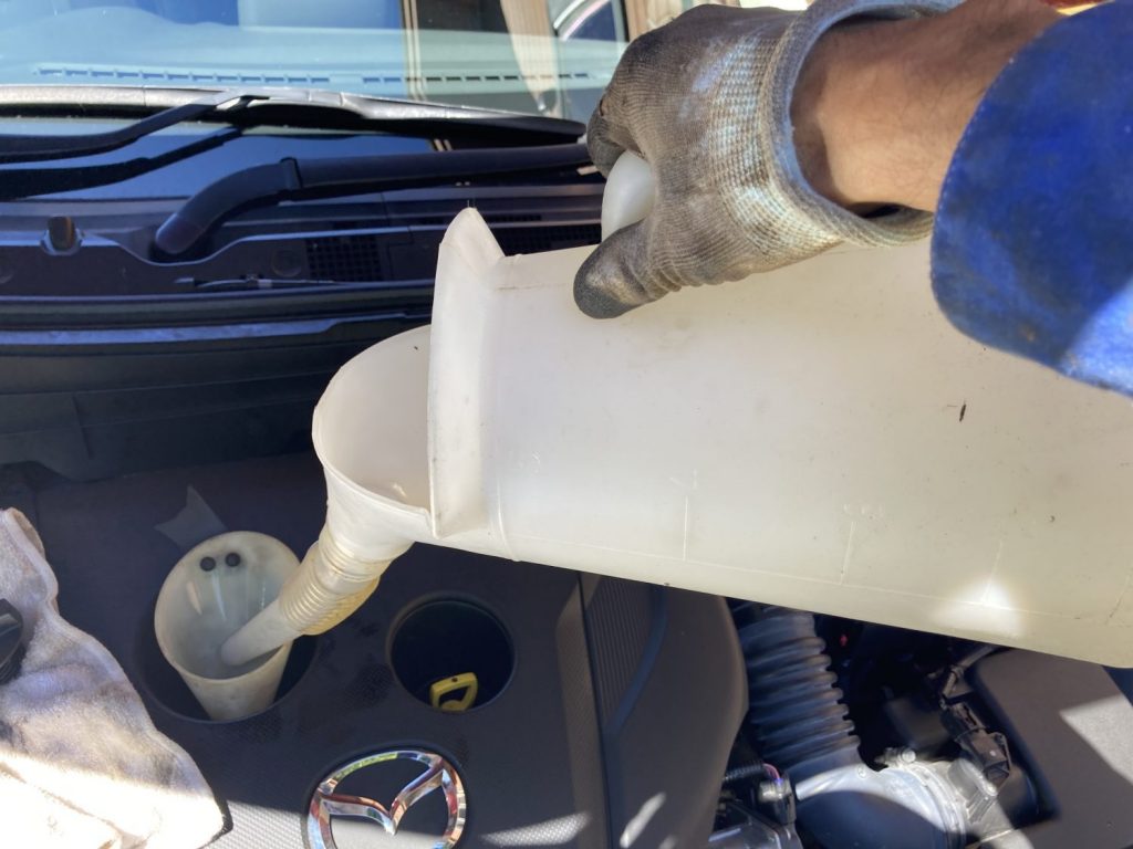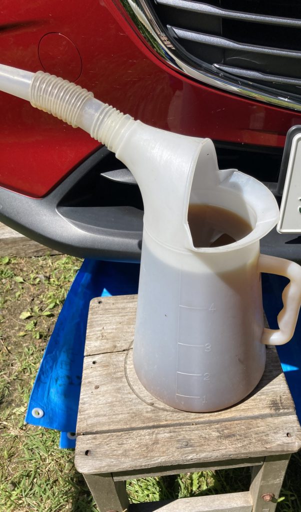 今回は、ヤフオクで落札した格安のマツダ正規品オイルDLー1ディーゼルオイルを使用します。
