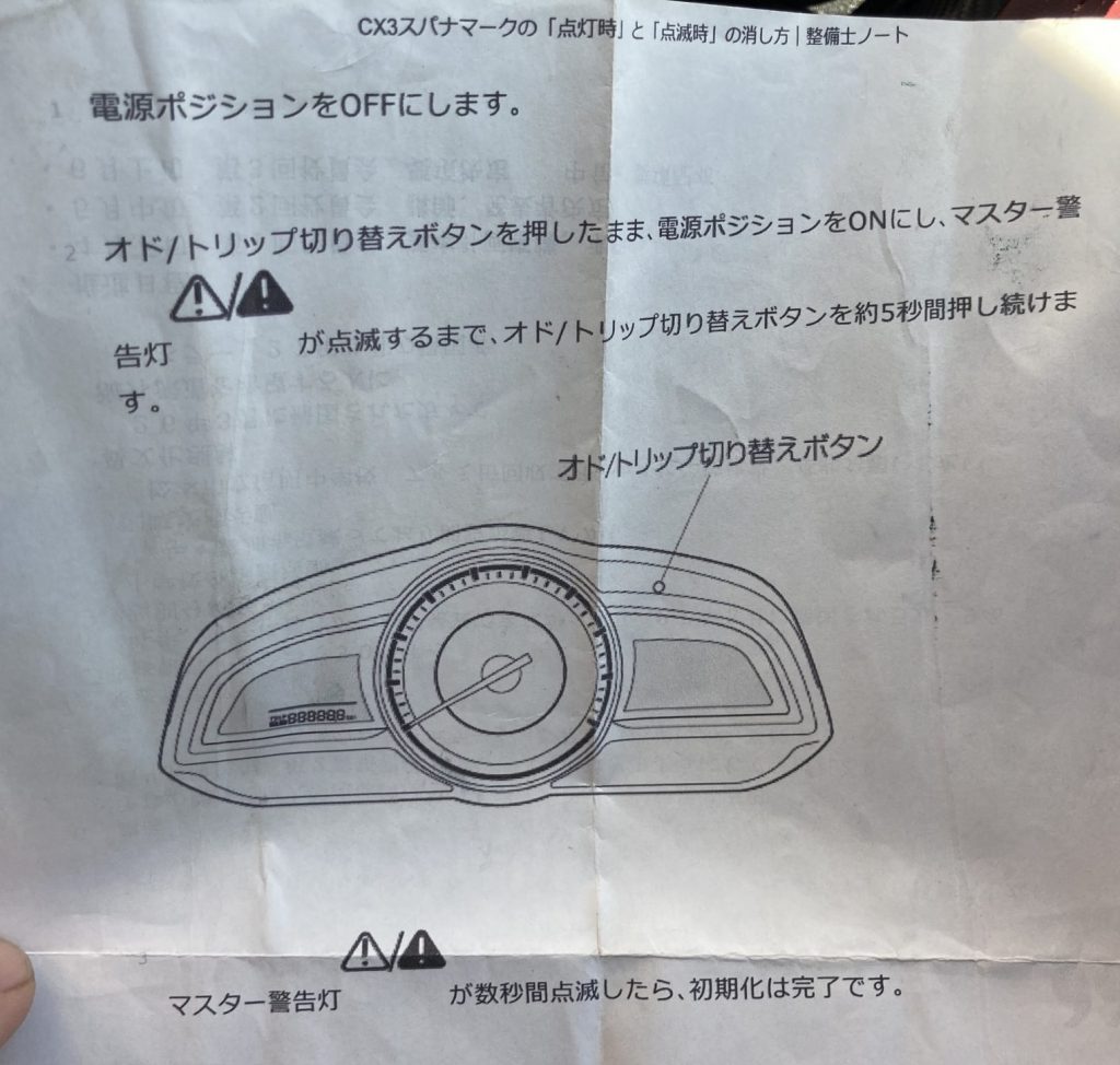 オイル交換後、コンピュータをリセットします。これは、液晶画面上ではできません。また、マツダCXー3の電子マニュアルにだけ載っていました。車載のマニュアルにはありません。