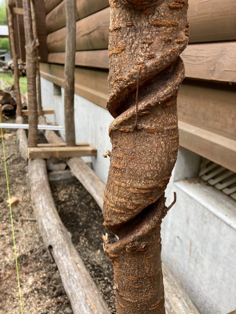 なかなか、自然の栗の木は曲がっていて、水平が出しにくいですね。まあ、だいたいで良いです。