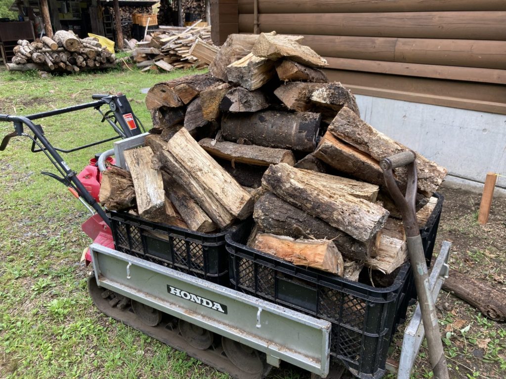 やっと完成しました。早速、運搬車の薪とコンテナーを運びました。