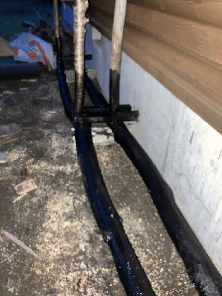 地面からの腐朽菌対策として、車の廃エンジンオイルを塗ります。いままで捨てていたのが嘘のよう。0Wー30のディーゼルエンジンオイルです。さらさらな上に、すすで真っ黒になっていて、真っ黒の塗料のようです。防虫防水効果があります。
