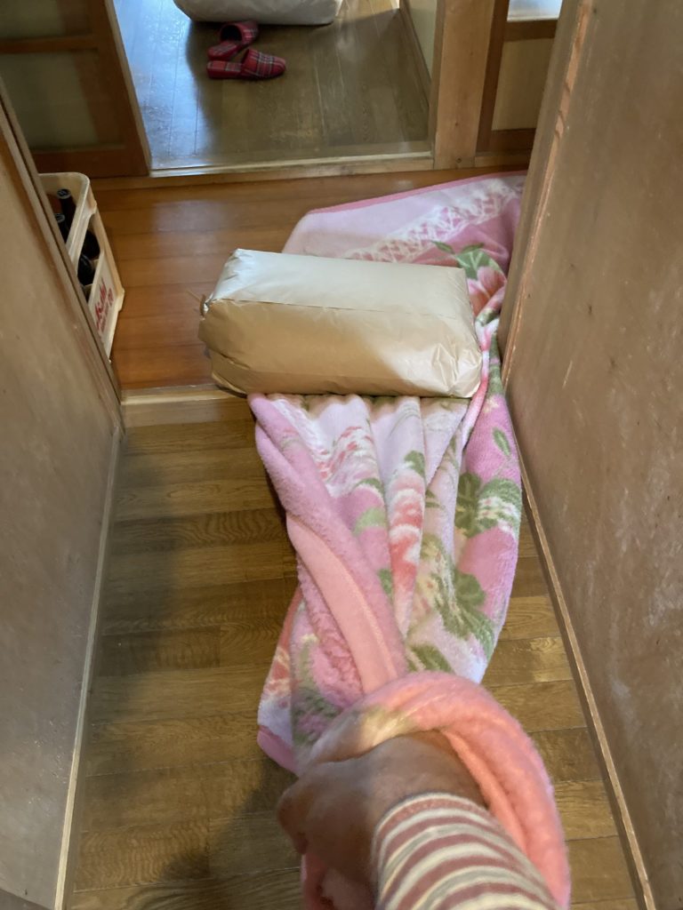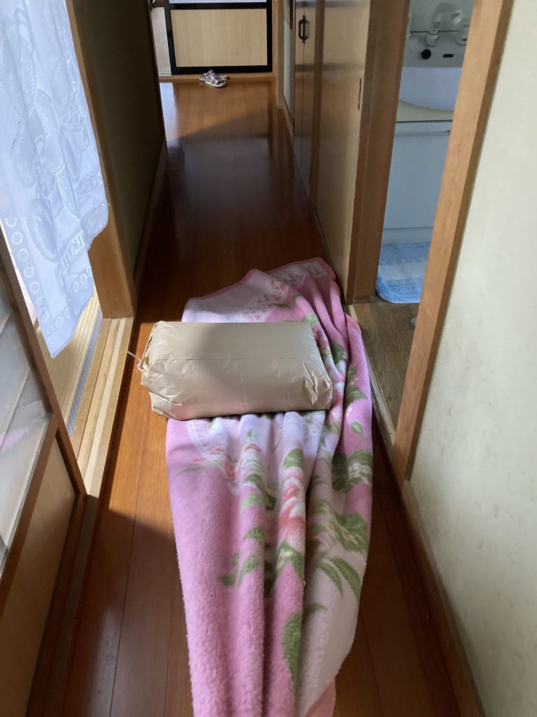 いろいろやってみましたが、毛布でずりずりと引きずって運ぶのが一番楽ですね。