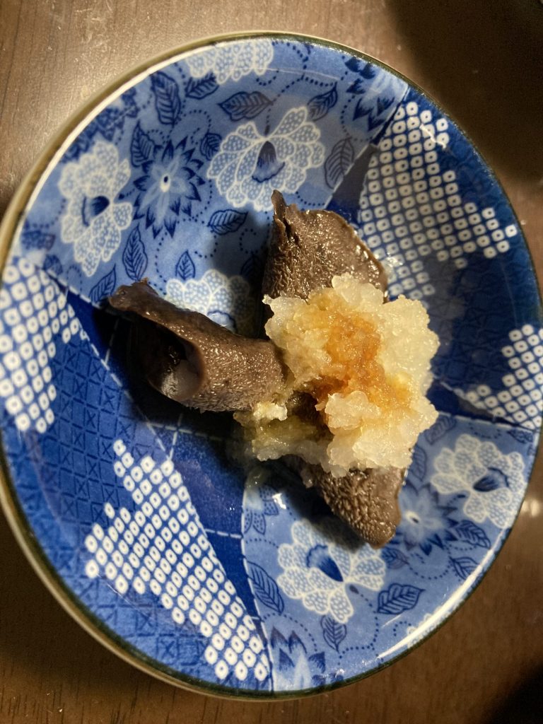 茹でて、大根おろし、醤油で食べるとコリコリしてとってもおいしいのです。