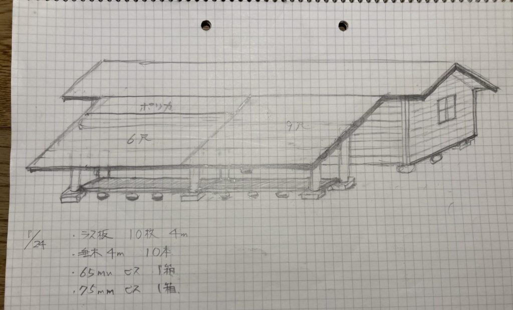 最初に作った薪小屋から、拡張していったので変則的な構造になっています。