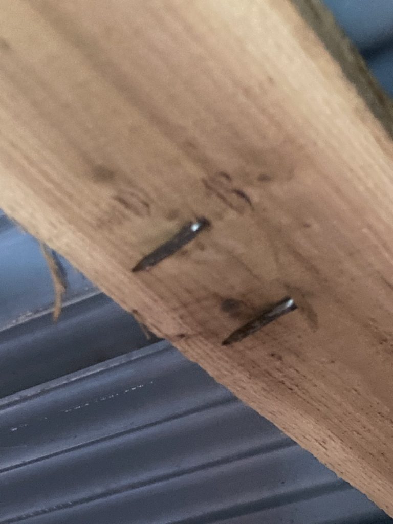 その後、ラス下から飛び出している波トタンを留めているカサ釘を全て折り曲げました。