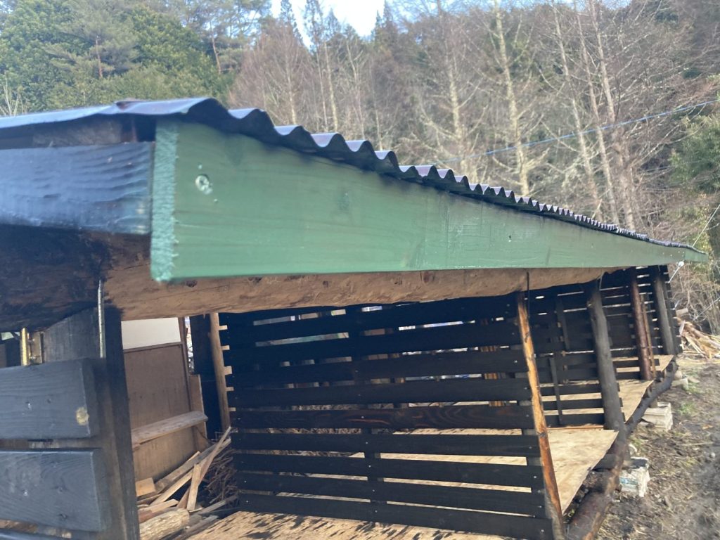 3年間にわたる薪小屋作りも最終段階を迎えました。充実感がありますね。ある物でできるだけ予算をかけずに工夫して作ることへのチャレンジ。結果、材料、金具、道具類などで10万円以内でできました。
