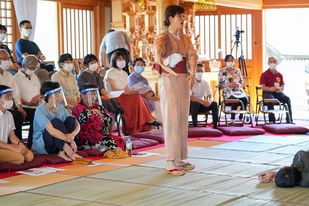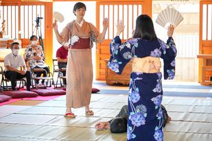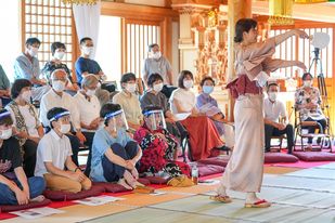 金田渚さん、小原華さんの歌う「すくいさ」「音頭」の盆唄が瑞光院本堂に響きます。