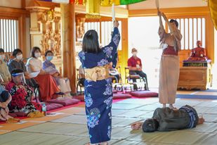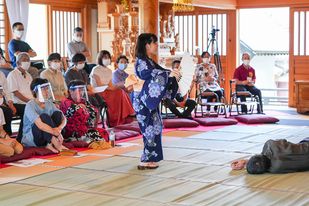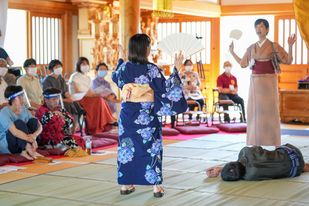 〇お寺の本堂での上演で、セミの声や気持ちよく吹き込む風を楽しめました。この場で演じられること、観られることがとても素敵なことです。飯田公演を見ようと思っていましたがフェスタ中止になり残念でした。いつか再演を願っています。盆踊りも今年は無事できるとよいですね。(女性)