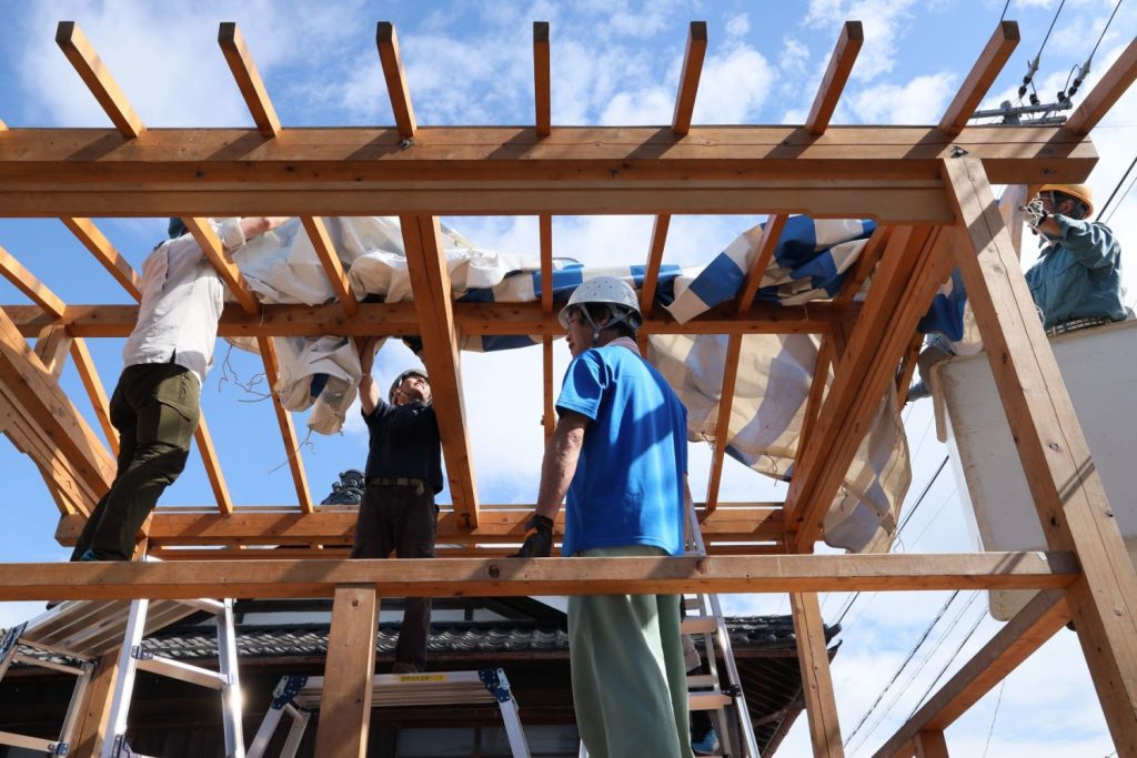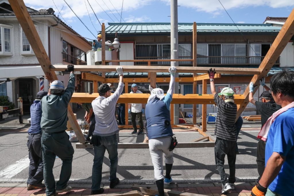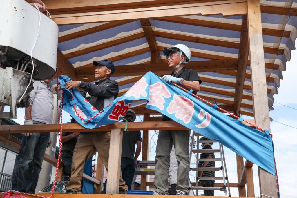 2019年 8月13日 3年前の櫓建ての様子です。 全て人力で行います。