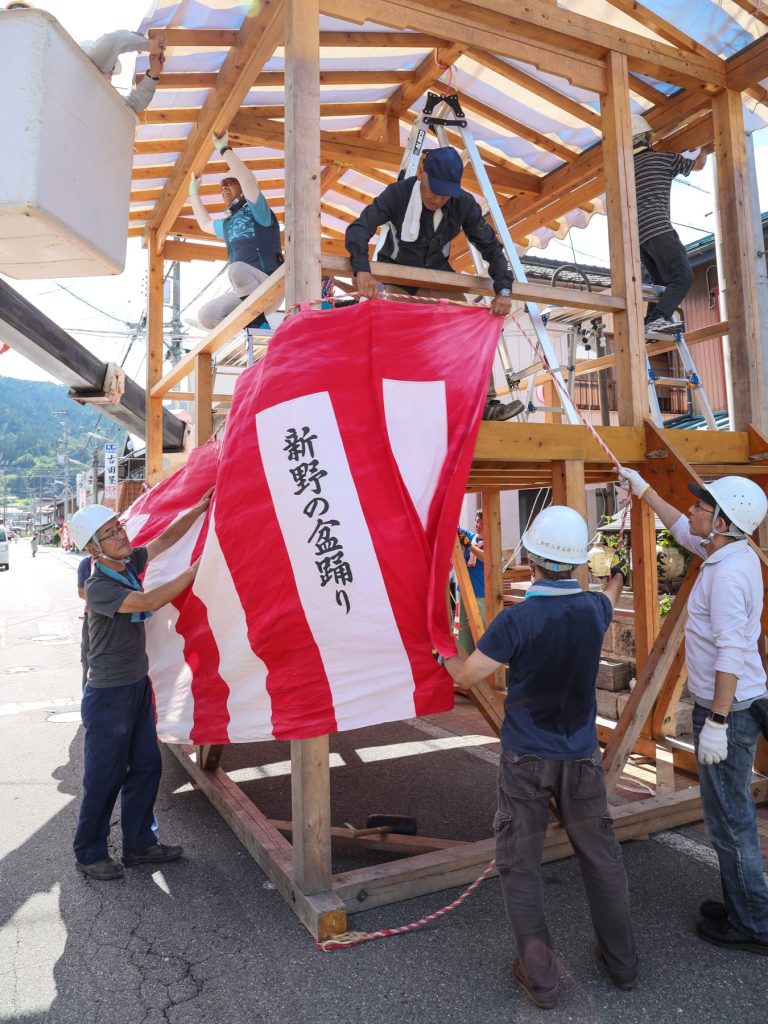 南信州新野高原(長野県下伊那郡阿南町新野)は、明日8月14日夜9時から3晩「新野の盆踊り」が行われます。まずは、本日13日13時から、会場準備です。
