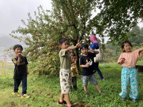 リンゴの木から直接取って食べるなんて、なかなかできない体験です。