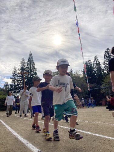次の日は、朝から和合大運動会に参加。飛び入りでも参加できます。地区の運動会に小学校の種目、幼児の種目が入っています。