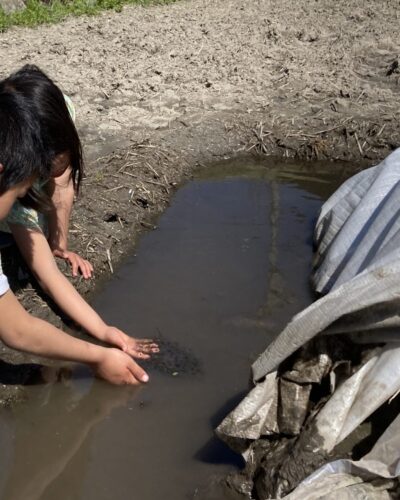 歩いて5分の田んぼにカエルの卵発見。教科書やネットではなく本物の体験がここにはあります。