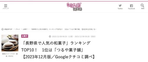 ねっとらぼ調査隊で「長野県で人気の和菓子」ランキング1位に