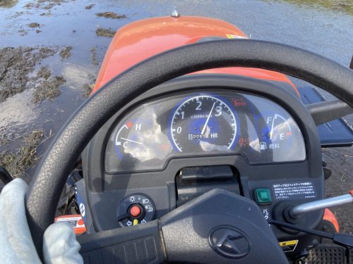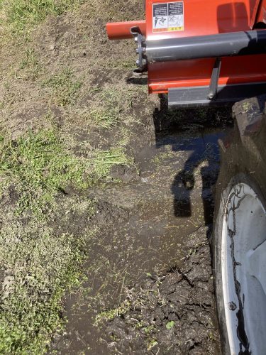 エンジン全開。荒代は、変速ギア1・ロータリーギア1 仕上げは変速ギア2 ロータリーギア1でゆっくり横方向に荒代をかきます。