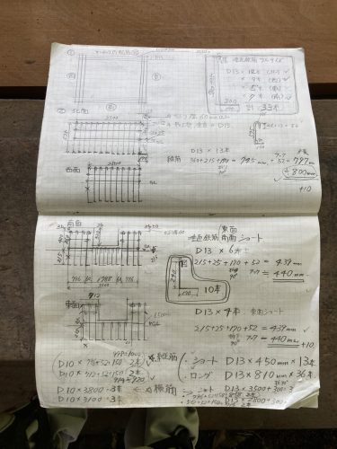 配筋図がなかったので、自分なりに書いてみました。そうすると、鉄筋の加工が分かりやすいです。