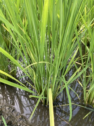 田んぼの稲は最高分げつ期を迎え、1株23本程度になりました。