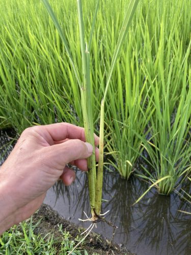 引っ張り出すと、ちゃんと小さな稲穂ができていました。