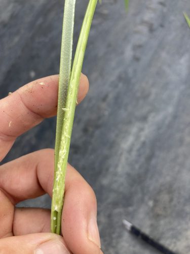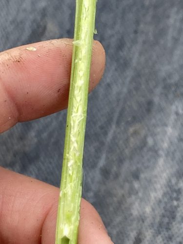 幼穂(ようすい)茎の中にでき始めた小さな穂の元になる部分を調べてみました。