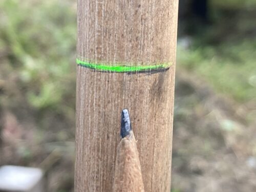 1本の天端ターゲットマーカーを正確な天端高さに合わせたら、自作レンチの棒にマークします。