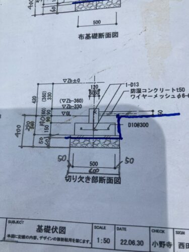 切り欠き部は、天端—360mmとー330mmに合わせます。東側ドアと南側掃き出し引き戸です。