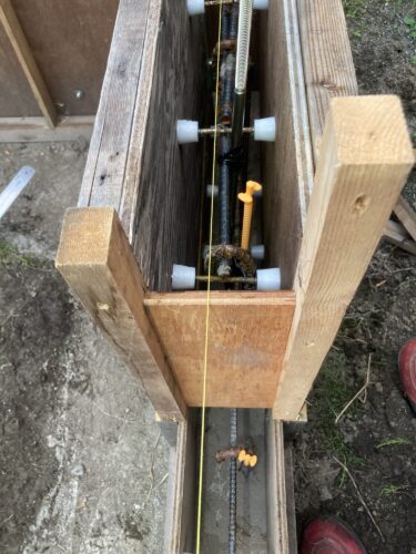 木の丸棒の先を加工して、ボックスレンチを取り付けて、天端ターゲットを回して、