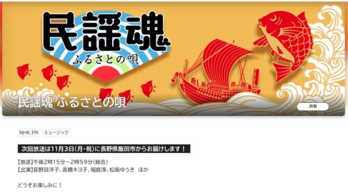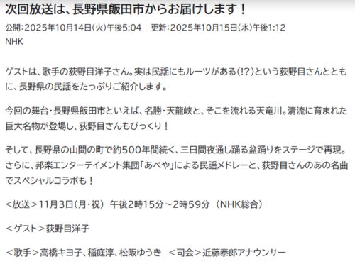 11月3日14:15~14:59 NHK総合テレビで全国放送されます。