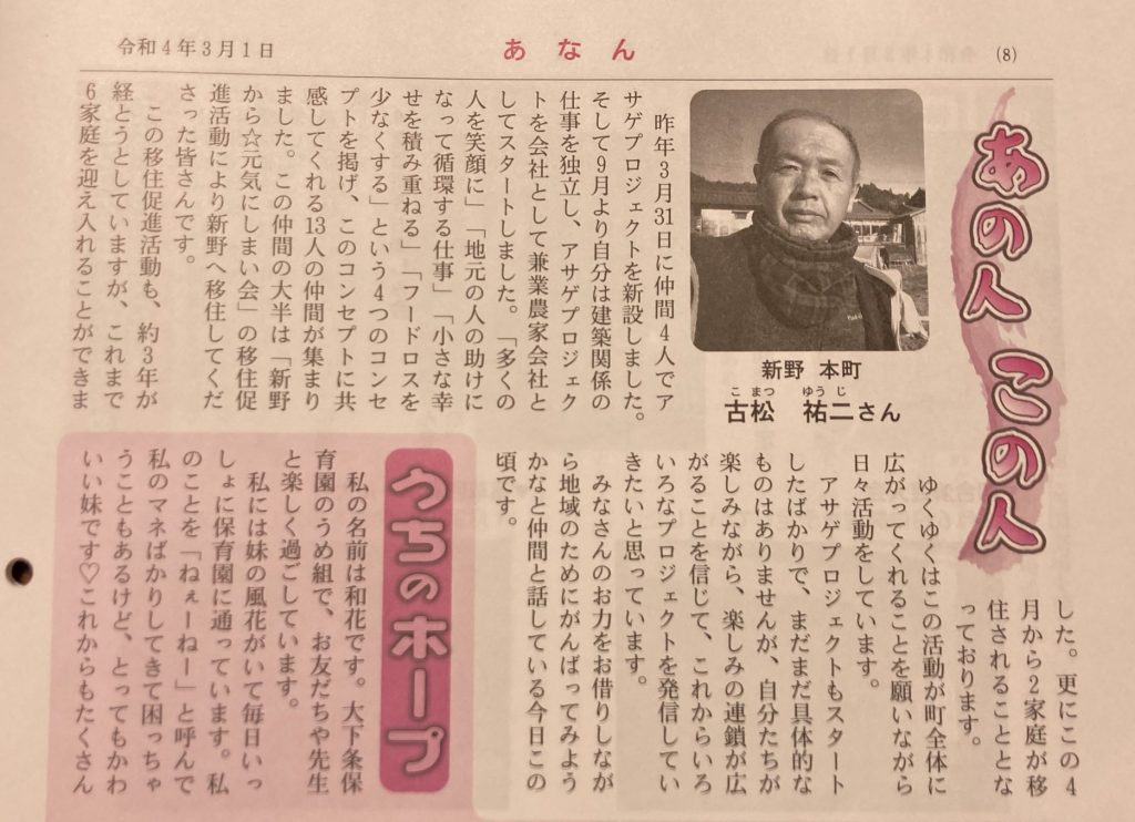 新野から☆元気にしまい会 会長の古松祐二さん が阿南町公民館報に掲載されました。