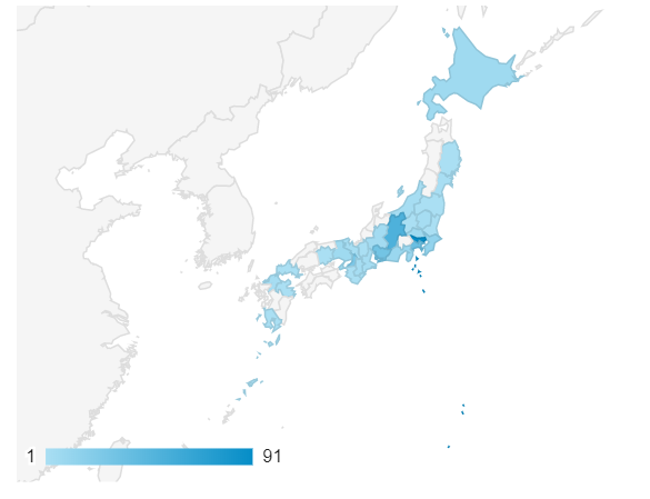 DeepJapan新野高原へのアクセスのあった地域とユーザー数
